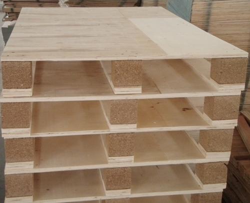 胶合托盘是由木段旋切成单板或由木方刨切成薄木,再用胶粘剂胶合而成的三层或多层的板状材料,通常用奇数层单板,并使相邻层单板的纤维方向互相垂